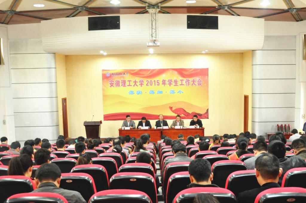 为进一步加强和改进学生工作队伍建设与管理,推动和落实学生工作的精细化,实现“立德树人”的工作目标,全面贯彻落实学校2015年总体工作部署,4月2日下午,学校在校本部六角楼报告厅隆重召开2015年学生工作大会。副校长叶醒狮出席大会并讲话。学生处处长田中良主持会议。