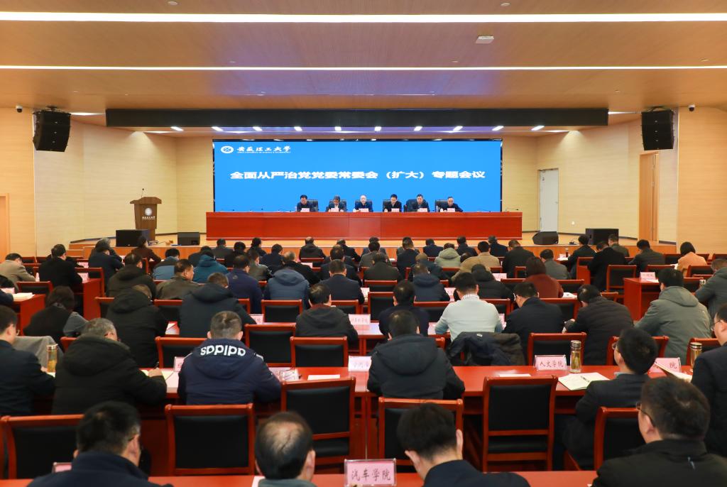 12月12日下午,校党委书记郭永存在学校一楼报告厅主持召开了全面从严治党党委常委会(扩大)专题会议,开展警示教育,研究部署有关工作。校党委副书记、常务副校长余玉刚,校党委常委、副校长董雨、鲁超,校党委常委、纪委书记、监察专员王献余,校党委常委、副校长张平松参加会议。