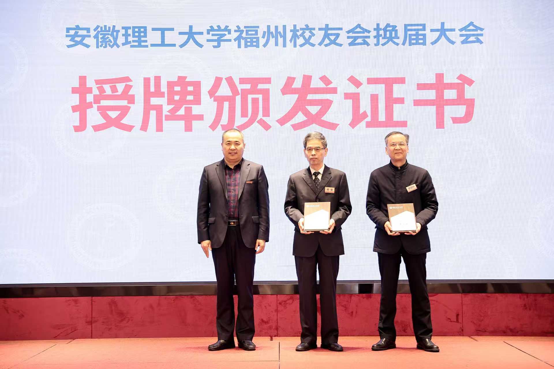 王先江还为新一届福州校友会授旗,并为名誉会长、会长授牌。
