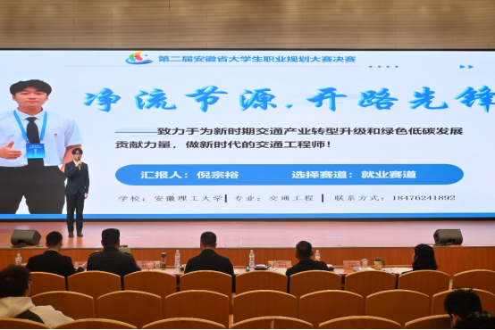 校赛自10月份大赛启动以来,学校高度重视、精心部署,先后组织指导教师培训、学生赛前指导,举办生涯嘉年华活动、就业招聘会等丰富配套活动,营造良好大赛氛围。经各学院广泛宣传、积极动员,全校共17000余名学生报名参赛。经过院级初赛、校级半决赛,18名选手进入成长赛道决赛,13名选手进入就业赛道决赛。决赛邀请了国瑞药业、中铁四局等知名企业高级管理人、招聘负责人,中国科学技术大学、安徽医科大学等高校知名生涯规划专家担任现场评审专家。