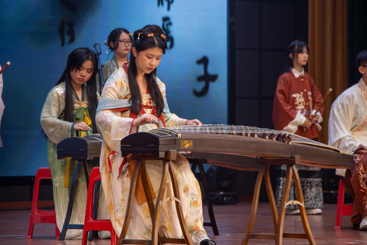 闭幕式采用节目演出的方式,来自各个社团的14个节目独具匠心,一首充满活力的友情赞歌《像你这样的朋友》欢快上演,舞台风格搞怪温情,在场观众无一不跟着节奏哼唱,沉浸在朋友间既简单又真挚的快乐中;活力与动感融合,啦啦操协会用矫健身姿和精准技巧,跟随律动、踏着节拍、变换动作,托举、抛举、抛接、尖子,整体动作行云流水,力量之美淋漓尽致;器乐演奏《象王行》,鼓声雄浑有力、古筝静谧高远、琵琶柔中带刚、竹笛悠扬恢弘,仿佛穿越时空,体验千年前的景象;特邀淮南市古琴协会演绎古琴名曲《欸乃》,“听渔家之浆橹欸乃之声”,乐曲清新隽永,引人浮现颐养至静的意境;相声《大学生就业指导》,一袭长袍、语言风趣,德馨社结合学校优势,“抖”出对我校大学生就业指导的建议,捧逗默契、“包袱”不断,轻松诙谐的同时也缓解了同学们的焦虑;话剧社《天台告白》、街舞社《Nothing On You》、舞蹈队《幻想童话&Panorama》《等你的回答》、合唱团《这世界那么多人》《为梦想喝彩》等精彩节目轮番上阵,纵享艺术盛宴。