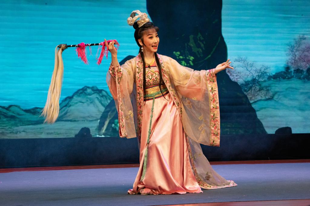黄梅戏唱腔淳朴流畅,以明快抒情见长,具有丰富的表现力;黄梅戏歌词清淡质朴,不事雕琢,言简意赅,清新脱俗。黄梅戏《天仙配》艺术魅力,不仅在于其戏剧元素的完美融合,更在于其感人故事的永恒魅力。现场艺术家们以其动听的唱腔、优雅动人的表演,让观众惊艳不已,细腻的情节和感人的故事,赢得了全场师生的喜爱和热烈的掌声。
