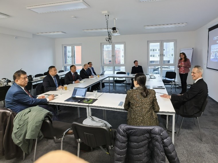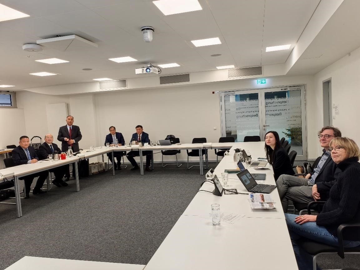 访问德国XU指数应用技术大学期间,张平松一行与该校校长Dr. Filipe de Castro Soeiro教授、行政校长Dr.Beate Wihelm女士、副校长Dr. Henrik Schober-Oschmann等进行了会谈交流。张平松表示,在12月9日Dr. Filipe de Castro Soeiro访问我校之后,此次对其进行回访,并进一步确定了在AI、环保、能源、管理、机械等领域开展数字化信息技术交流、人才联合培养和定制化教学项目,双方达成了合作共识。