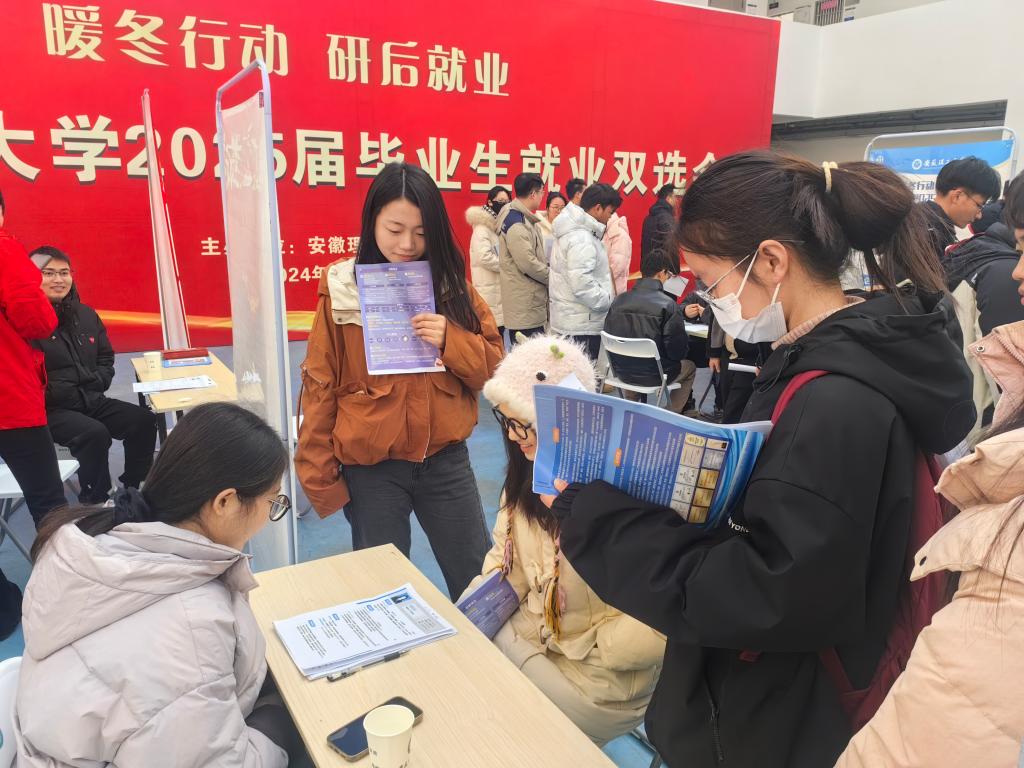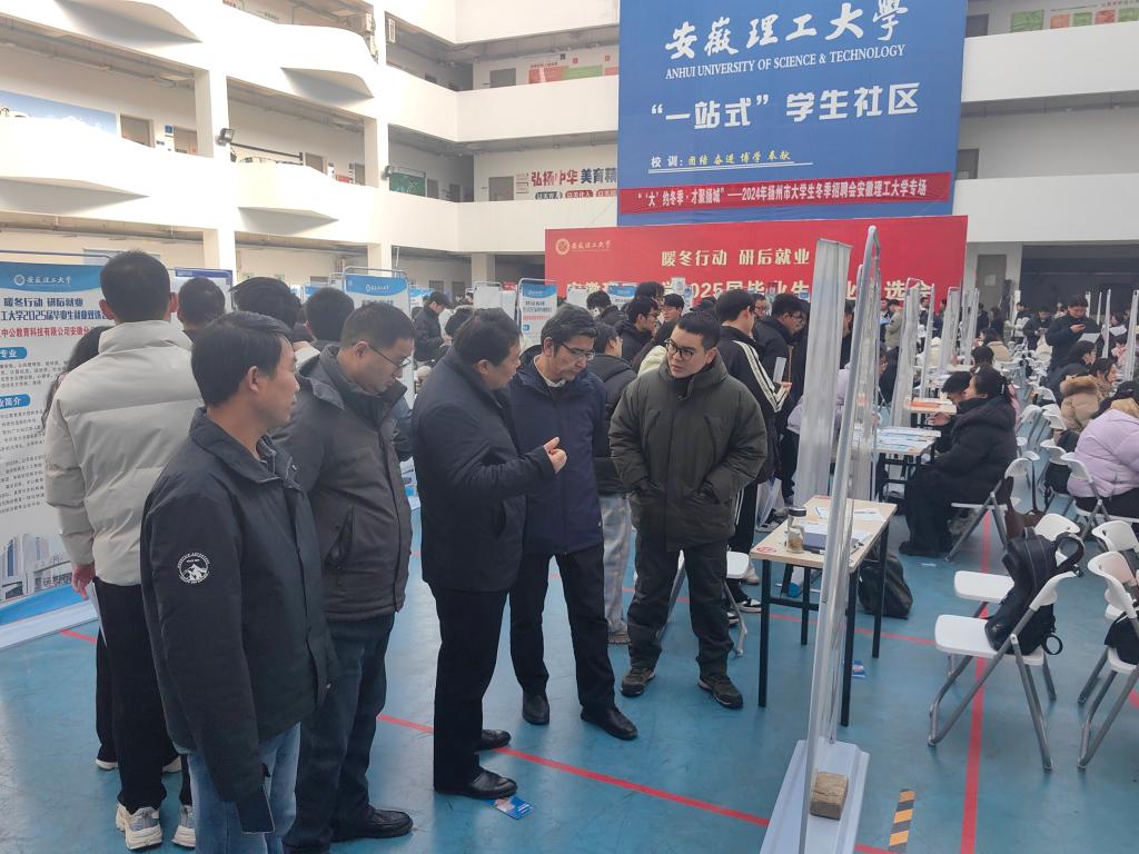 为深入落实2025届全国普通高校毕业生就业创业工作会议要求,12月28日上午,学校在厚德馆大厅成功举办“暖冬行动 研后就业”2025届毕业生就业双选会。安徽省教育厅大中专毕业生就业指导中心主任张秋田,校党委常委、副校长董雨到现场与用人单位代表深入交流,了解用人单位对我校人才培养、就业服务等方面的意见和建议,并围绕学校学科建设、人才培养以及毕业生就业等情况展开座谈交流。