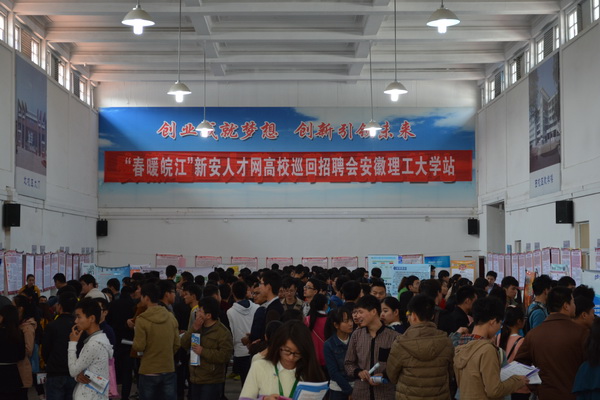 4月11日,由共青团安徽省委员会、新安人才网共同主办的“春暖皖江”2015新安人才网高校巡回招聘会在安徽理工大学大学生创业基地举行,提供需求岗位2000多个。我校近2000名毕业生参加了招聘会。