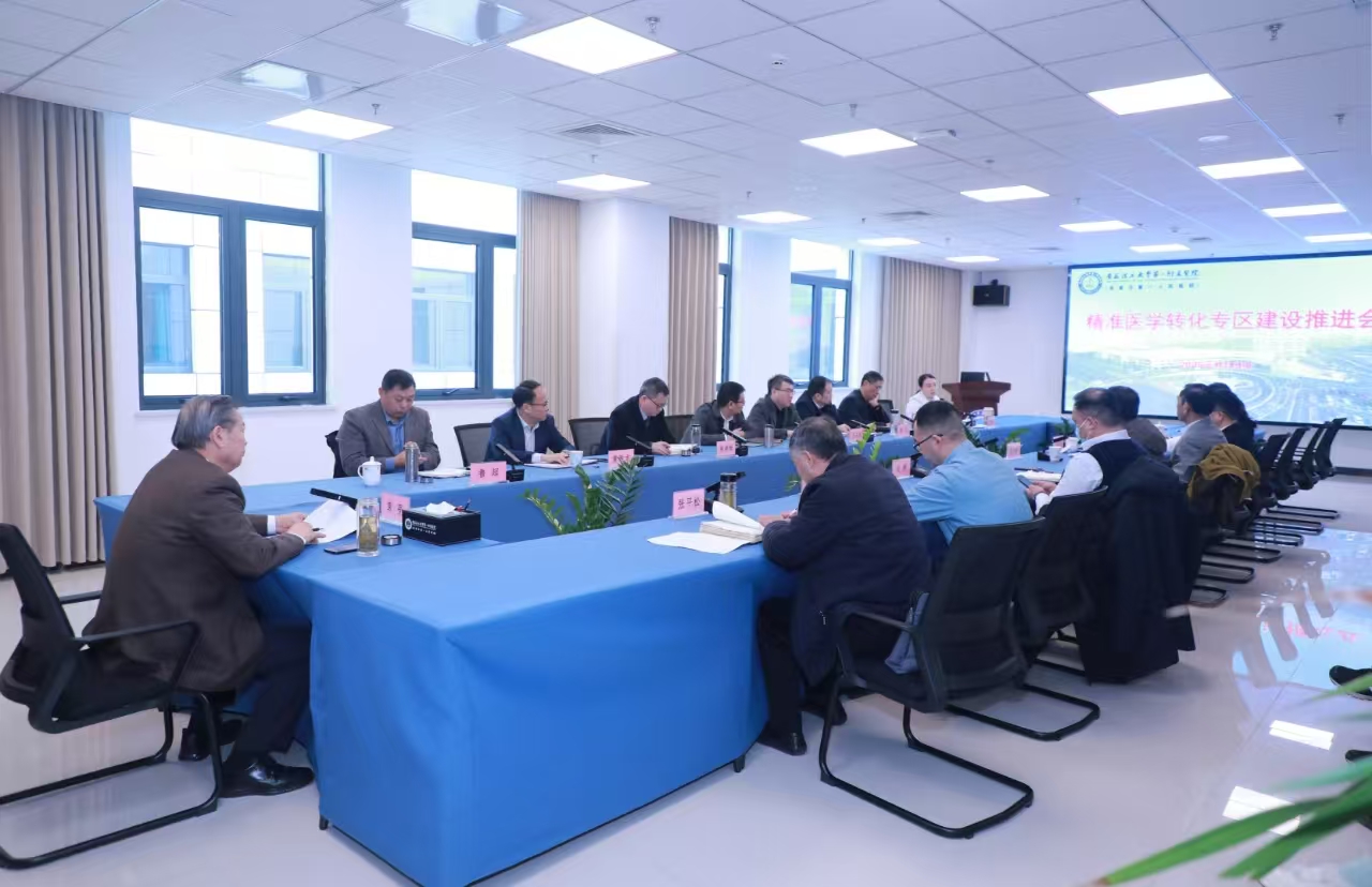 学校党政办公室、第一附属医院、人事处、研究生院、教务处、科研部、财务处、国有资产管理处、精准医学创新研究院科研团队负责人参加推进会。