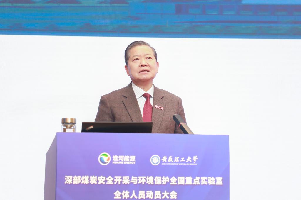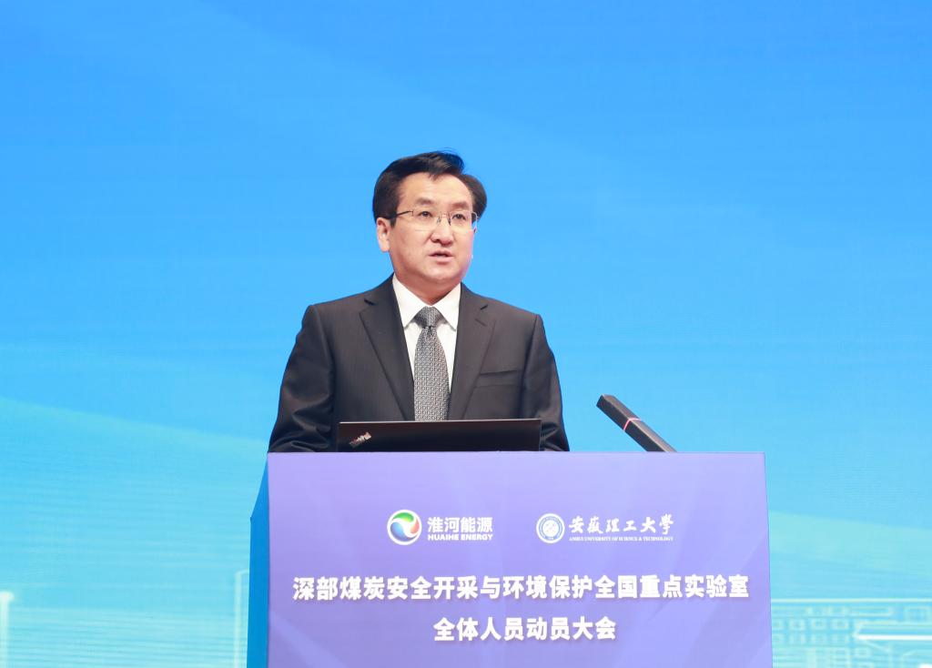 全国重点实验室主任袁亮从国家需求与历史贡献、使命定位与重点任务、建设举措与取得成效、代表性成果与新进展、发展规划与条件保障等方面等五个方面报告了全国重点实验室建设情况和取得的成效。他指出,全国重点实验室瞄准能源安全与生态环境安全领域国家战略需求,围绕5个研究方向、10项重点任务,在承担国家重大科研任务、开展应用基础研究、攻克重大技术难题和推进科研成果转化等方面取得了一系列重大标志性成果,主持行业首个部门推荐国家重大科研仪器研制项目“深地工程多场耦合动力灾变试验仪”研制,承担了深地国家科技重大专项“深部特殊空间探测与利用关键技术及示范”、国家矿山安全监察局重大项目“淮南矿区深部松软低透煤层高瓦斯压力治理工程试验”等国家、省部级重大科研项目,为保障深部煤炭资源安全开采和国家能源安全提供理论和技术支撑。他就2025年实验室重点工作作了部署,提出了目标、任务和要求。袁亮强调,目前,全国重点实验室建设已进入到极其关键时期,此次会议标志着双方共建的全国重点实验室人才这一关键要素全面融合,体制机制和激励政策更加完善。希望实验室全体固定人员积极参与到全国重点实验室建设和研究中来,把论文写在淮南矿区大地上,为深部煤炭安全开采与环境保护发挥更大的科技创新引领作用。