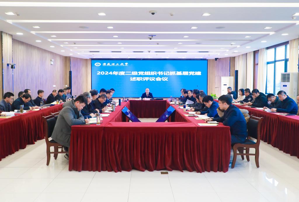 郭永存指出,开展党组织书记抓党建工作述职评议,是以彻底的自我革命精神推进全面从严治党的重要制度安排,是进一步压紧压实党组织书记“第一责任人”责任、推深做实基层党建工作的重要抓手。过去一年,全校各级党组织坚持以习近平新时代中国特色社会主义思想为指导,全面贯彻落实党的二十大和二十届三中全会精神,深入贯彻落实习近平总书记考察安徽重要讲话精神,巩固拓展主题教育成果,持续深化党纪学习教育,狠抓重点、力攻难点,党建工作的政治引领和政治保障作用更加彰显,有力推动学校各项工作不断取得新进步、新成效,为学校事业高质量发展提供了坚强保证。