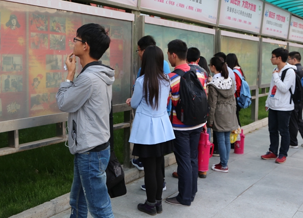 4月21日起,学校2015年“学雷锋志愿者服务月”活动成果图片展在北校区宣传栏中展出。