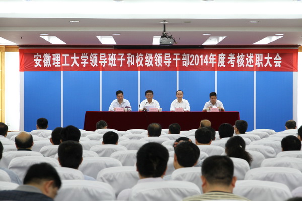 4月27日下午,我校召开校党政领导班子和校级领导干部2014年度考核述职大会。以省委教育工委组干处调研员朱晓明为组长的考核组一行到校指导。会议由校党委书记颜事龙主持。校长郭永存,校督导员张明旭,校领导叶醒狮、王洪、王其东、周峰,处级干部,正高职称人员参加了会议。
