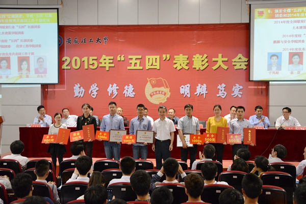 副校长叶醒狮在大会上宣读了《关于表彰安徽理工大学2014--2015学年度共青团工作先进集体和先进个人的决定》等6份表彰文件。