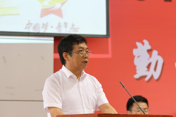 校党委书记颜事龙代表学校党政向全校青年师生和共青团工作干部致以节日的问候,向受到表彰的先进集体和个人表示热烈的祝贺,并从坚定理想信念、强健身心体魄、力求全面发展、提升服务能力四个方面对全校各级团学组织和青年学生提出了“强心志、强体魄、强发展、强服务”的四点希望。他要求青年师生们要坚定理想信念,补足精神“钙”;积极投身体育锻炼,强健体魄,培养体育精神、协作精神、奋斗精神和拼搏精神;围绕“立德树人”根本任务,把促进学生全面发展、健康成长作为各项工作的出发点和落脚点,让每个学生都能成为有用之才;切实加强和改善对共青团工作的领导,切实关心团干部的成长进步,为共青团工作的长远发展,创造更好的环境和条件。最后,颜事龙勉励青年师生作为分享时代机遇的受益者,努力创新创业创优,做走在时代前列的奋进者、开拓者、奉献者。