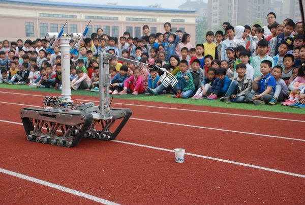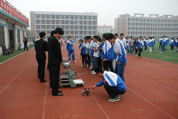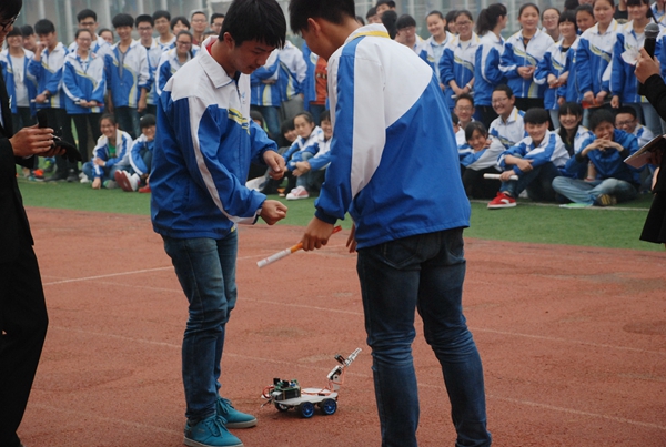 大学生机器人协会、航模协会带来的各种航空模型、车辆模型、竞技机器人、智能机器人等科技作品一亮相就引起两校同学的强烈兴趣和好奇心。既有天上飞的“飞行器”,又有地上跑的遥控“坦克”,还有“机器人”跳舞和“机器人”雕刻等。精彩的演示赢得了同学们的阵阵赞美和叫好,现场气氛十分热烈。演示完毕后同学们纷纷走上展台,围拢着科普团成员提出自己感兴趣的问题,部分同学亲身体验操控了一把,取得了良好的教育效果。