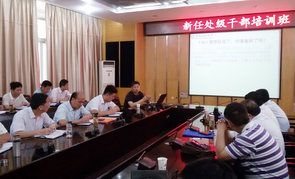 5月16日上午,副校长孟祥瑞在图北会议室为新任处级干部培训班学员讲授《如何带好一支忠诚且有战斗力的团队》专题。