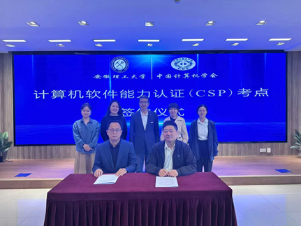 4月9日,我校与中国计算机学会(CCF)计算机软件能力认证考点服务协议签约仪式在舜耕苑二楼会议室举行。校党委常委、副校长董雨,CCF副秘书长束庆山出席签约仪式。