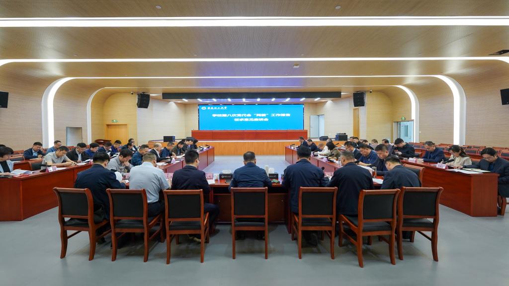 4月17日上午,学校第八次党代会“两委”工作报告(党委工作报告、纪委工作报告)征求意见座谈会在党委办公楼一楼报告厅举行。校党委书记郭永存主持会议并讲话。校领导余玉刚、王献余、王先江、张平松、赵光明、徐良骥出席会议。