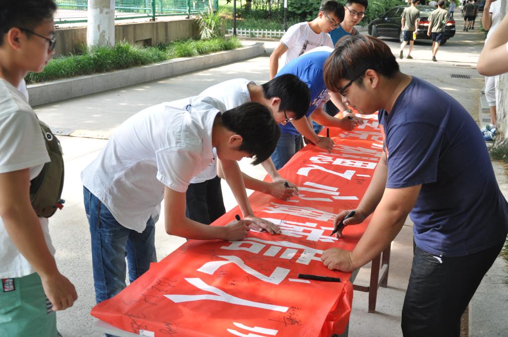 随后,举行了《安徽理工大学2015届贷款毕业生诚信承诺书》签字仪式。贷款毕业生庄重承诺:向学校和银行所提供的材料客观、真实、有效,绝无虚假;珍惜并保持自己本人良好的征信记录,保证在今后的工作和生活中做到遵纪守法、诚信做人、爱岗敬业;积极主动与银行签订还款协议,毕业后切实履行银行借款合同和还款协议上的各项条款及有关规定,按时偿还贷款本息。活动最后,贷款毕业生纷纷在“怀感恩之心、做诚信之人”的横幅上签上自己的姓名。