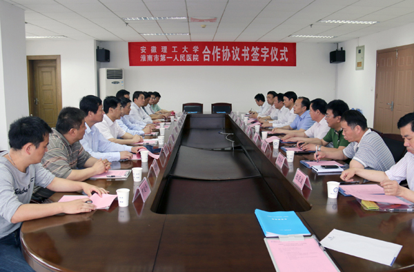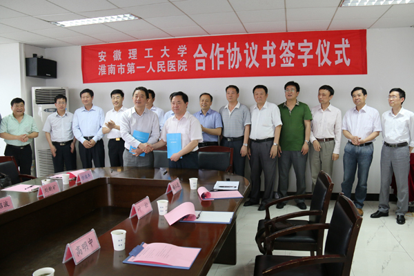 学校党政办公室主任郑为超、教务处处长黄友锐、研究生院常务副院长高明中、人事处处长宫能平、医学院党委书记叶松、医学院副院长梅仁彪以及淮南市第一人民医院副院长董斌等参加了签字仪式。