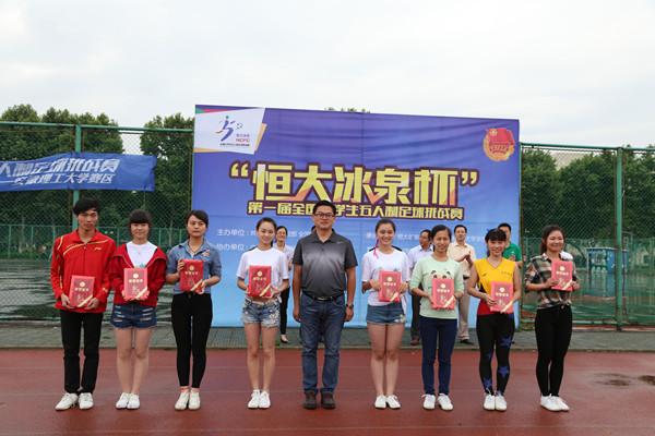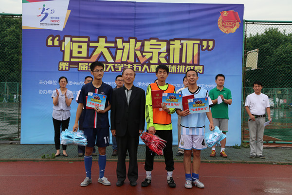 6月4日下午,安徽理工大学首届大学生五人制足球联赛决赛在北校区操场举行。副校长叶醒狮,体育部、校团委和部分学院负责人到场观看了精彩的比赛,并为获奖的足球队、啦啦操队颁奖。