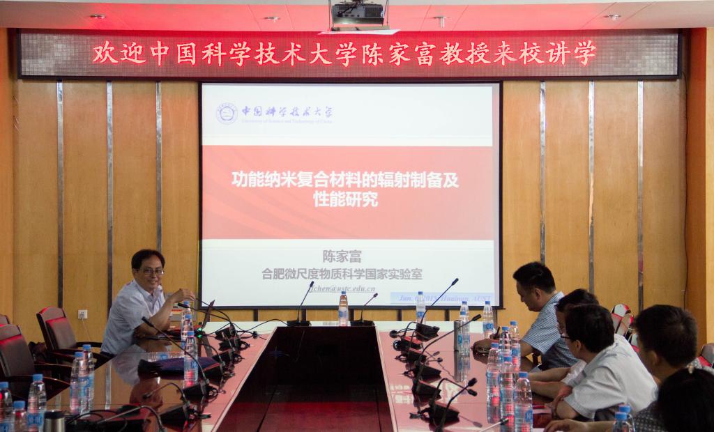 6月6日上午,应科技产业处、化学工程学院邀请,中国科学技术大学陈家富教授来校在图书馆北会议室作了《功能纳米复合材料的辐射制备及性能研究》的学术报告。报告会由化学工程学院院长何杰主持。化学工程学院教师和研究生参加了报告会。