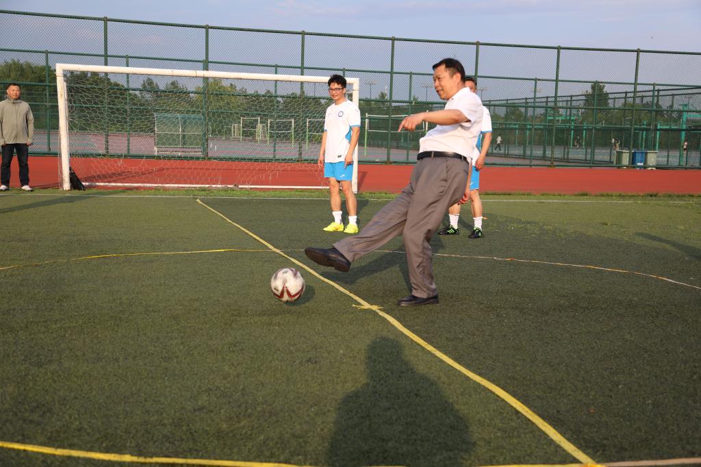 为丰富教职工业余文化生活,增强广大教职工身体素质,提高我校教职工足球运动竞技水平,为学校80周年校庆营造浓厚的氛围,6月9日下午,学校2025年“校庆杯”教职工男子五人制足球赛在信义体育场拉开序幕,校党委常委、副校长鲁超为比赛开球。