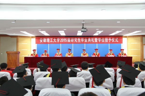 6月16日上午8:00,学校在九楼报告厅隆重举行2015届研究生毕业典礼暨学位授予仪式。校领导颜事龙、郭永存、叶醒狮、王洪、刘泽功、王其东、孟祥瑞、周峰出席典礼和仪式,为毕业研究生授予学位并扶正流苏。典礼由副校长王其东主持。