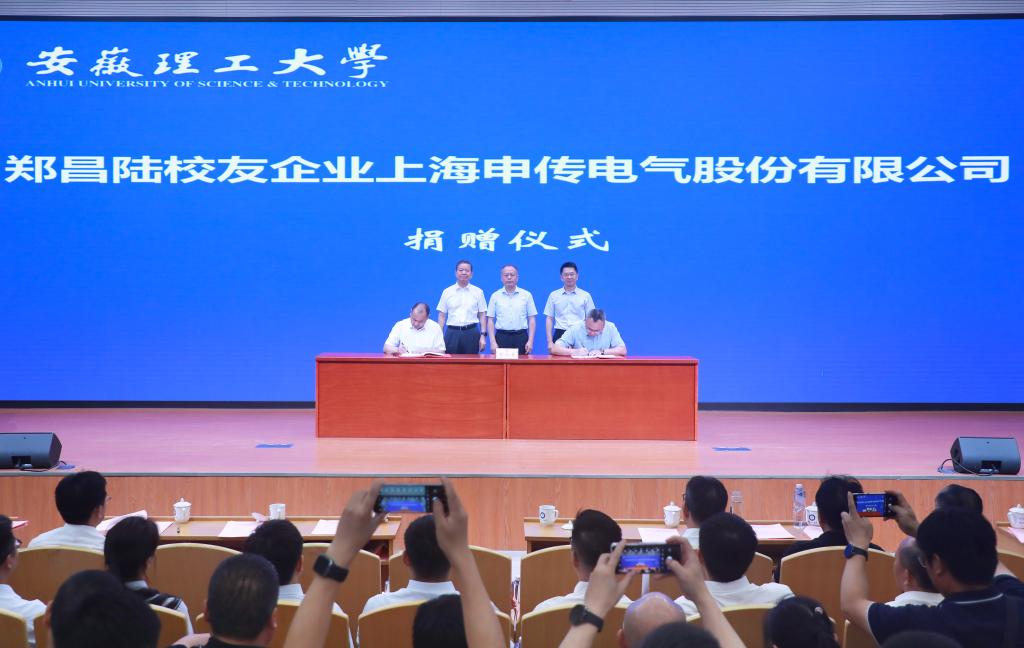 至此,捐赠仪式落下帷幕,也为建校八十周年校庆捐赠活动拉开重要序幕。两笔千万元校友捐赠,两种模式、同份赤诚。校友企业上海申传电气股份有限公司践行“工业报国”初心,厚植校企情谊;地质86级全体校友满载同窗与母校共进之深情。相信这份担当,必将感召更多“安理人”,为学校“双一流”创建汇聚磅礴动能,让八十华诞的安徽理工大学在代代奉献中绽放更加璀璨的光芒。