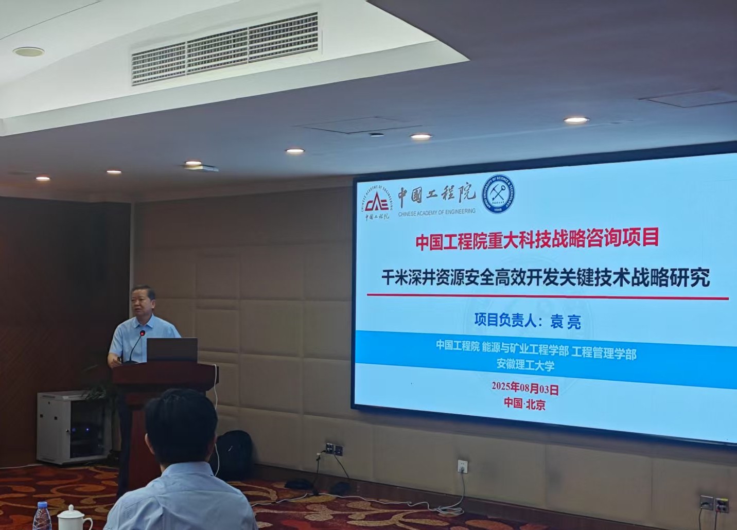 8月3日上午,由校党委副书记、校长袁亮院士牵头承担的中国工程院重大战略咨询项目“千米深井资源安全高效开发关键技术战略研究”启动会在北京召开。中国工程院院士彭苏萍、赵文智、顾大钊、王国法、武强、王双明、王运敏,中国工程院二局能源与矿业工程学部办公室一级调研员解光辉,中国煤炭学会理事长刘峰,中国矿业大学(北京)鞠杨教授、副校长王凯、院长赵毅鑫,安徽建筑大学副校长杨科等40余位院士专家学者齐聚一堂,共商深地资源开发战略大计。启动会由校党委常委、副校长赵光明主持。