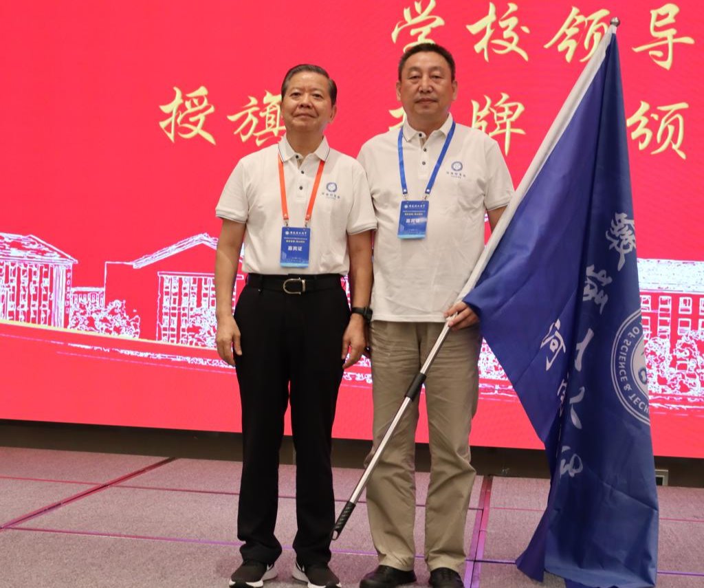 袁亮为河南校友会授旗、授牌,王先江为理事会成员颁发聘书。