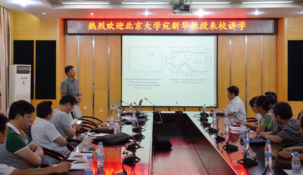 7月22日下午,应校科技产业处、化学工程学院邀请,国家杰出青年基金获得者、北京大学宛新华教授来校进行学术交流,并在图书馆北会议室作了题为《光学活性螺旋链聚合物》的学术报告。材料科学与工程学院、化学工程学院部分教师和研究生参加了报告会。