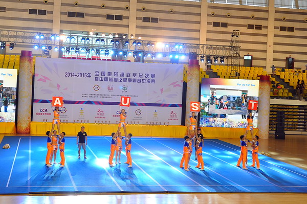 在7月21日结束的2014-2015年全国啦啦操总决赛暨“中国啦啦之星”争霸赛总决赛上,我校啦啦操队不畏强手,敢于表现,经过多场比赛,最终收获大学乙组技巧三级规定动作第三名和大学乙组集体花球自选动作第五名的好成绩,为我校增光添彩,充分展示了安理学子的精神风貌和竞技能力。