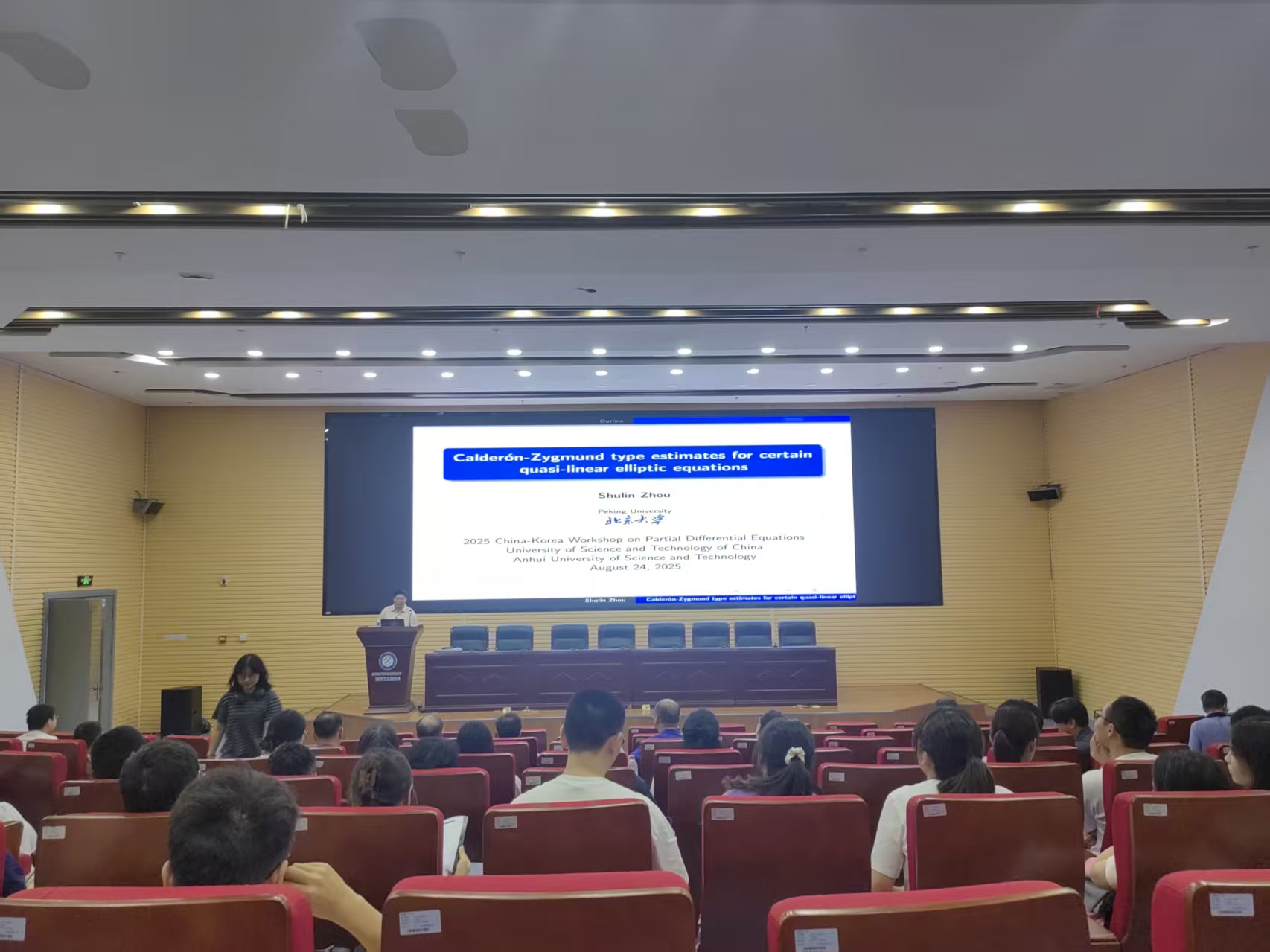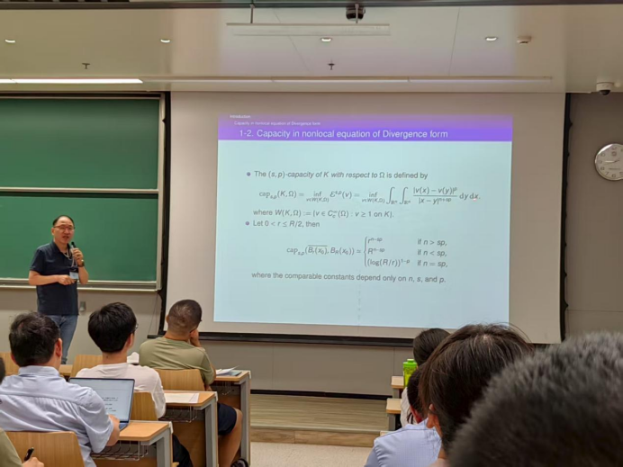 会议期间,首尔大学Ki-Ahm Lee教授、北京大学周斌教授、仁川大学Yeonghun Youn教授、西安交通大学李东升教授、汉阳大学Seunghyeok Kim教授、湖南大学徐露教授、北京师范大学熊金钢教授、西江大学Hyunseok Kim教授、北京工商大学刘勇教授、庆北大学Jehan Oh教授、韩国科学技术院Jaeyoung Byeon教授、哈尔滨工业大学张超教授、西江大学Jihoon Ok教授、首尔大学Sun-Sig Byun教授、复旦大学张霜剑教授、安徽理工大学苏宇副教授、建国大学Taehun Lee教授、韩国科学技术院Beomjun Choi教授、武汉大学敖微微教授、首尔大学Jinmyoung Seok教授、北京大学周蜀林教授、首尔大学Yumi Cho教授、复旦大学黄耿耿教授等专家先后就非线性椭圆与抛物方程、非局部与分数阶方程、几何分析与曲率问题、流体力学与物理建模、数学物理系统与爆破解、最优化与经济数学、经典不等式与泛函分析、可积系统与孤子理论、Monge-Ampère方程与最优运输、双相问题与调制系数模型等热点问题作了精彩报告。