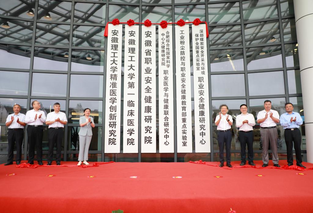9月9日上午,学校深部煤炭安全开采与环境保护全国重点实验室职业安全健康研究中心、工业粉尘防控与职业安全健康教育部重点实验室、合肥综合性国家科学中心大健康研究院职业医学与健康联合研究中心、安徽省职业安全健康研究院、安徽理工大学第一临床医学院、安徽理工大学精准医学创新研究院等职业安全健康领域6个创新平台挂牌仪式在第一附属医院南区隆重举行。校党委副书记、校长袁亮院士,淮南市人民政府副市长陆晞出席仪式并致辞。中煤新集能源股份有限公司党委副书记、总经理孙凯,校党委副书记、常务副校长余玉刚,校党委常委、副校长鲁超、张平松,淮河能源控股集团有限责任公司党委委员、副总经理段云刚,中煤新集能源股份有限公司副总经理万磊,安徽省第二人民医院党委书记、上海交通大学医学院附属仁济医院安徽医院党委书记丁文荣出席挂牌仪式。仪式由余玉刚主持。