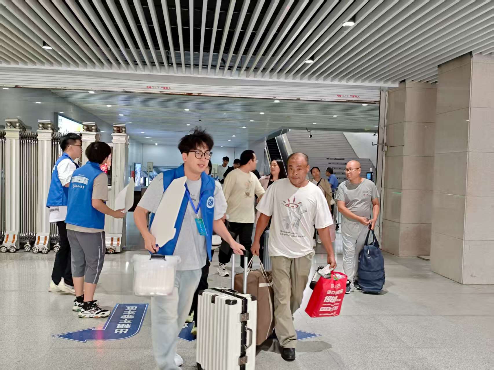 清晨6时许,迎新志愿者们已早早摆放好物资,到达指定岗位,他们统一身着蓝色志愿者服装、佩戴工作牌、手举指示牌,分工明确、各司其职、配合默契,在各站点有序开展迎新志愿服务。