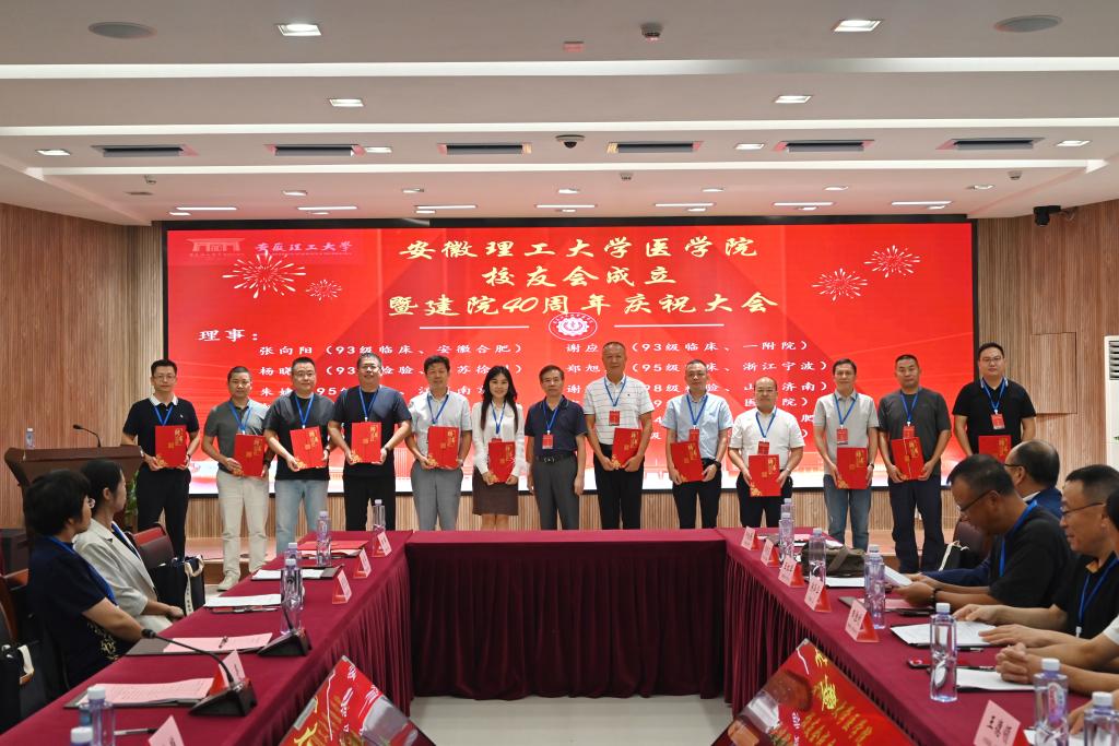 会议汇报了校友会筹备情况,宣读了《关于成立安徽理工大学医学院校友会的批复》。大会选举产生了学院校友会第一届理事会,张可佳当选为会长,学院老领导郑为超、张荣波为当选理事会成员颁发了聘书。