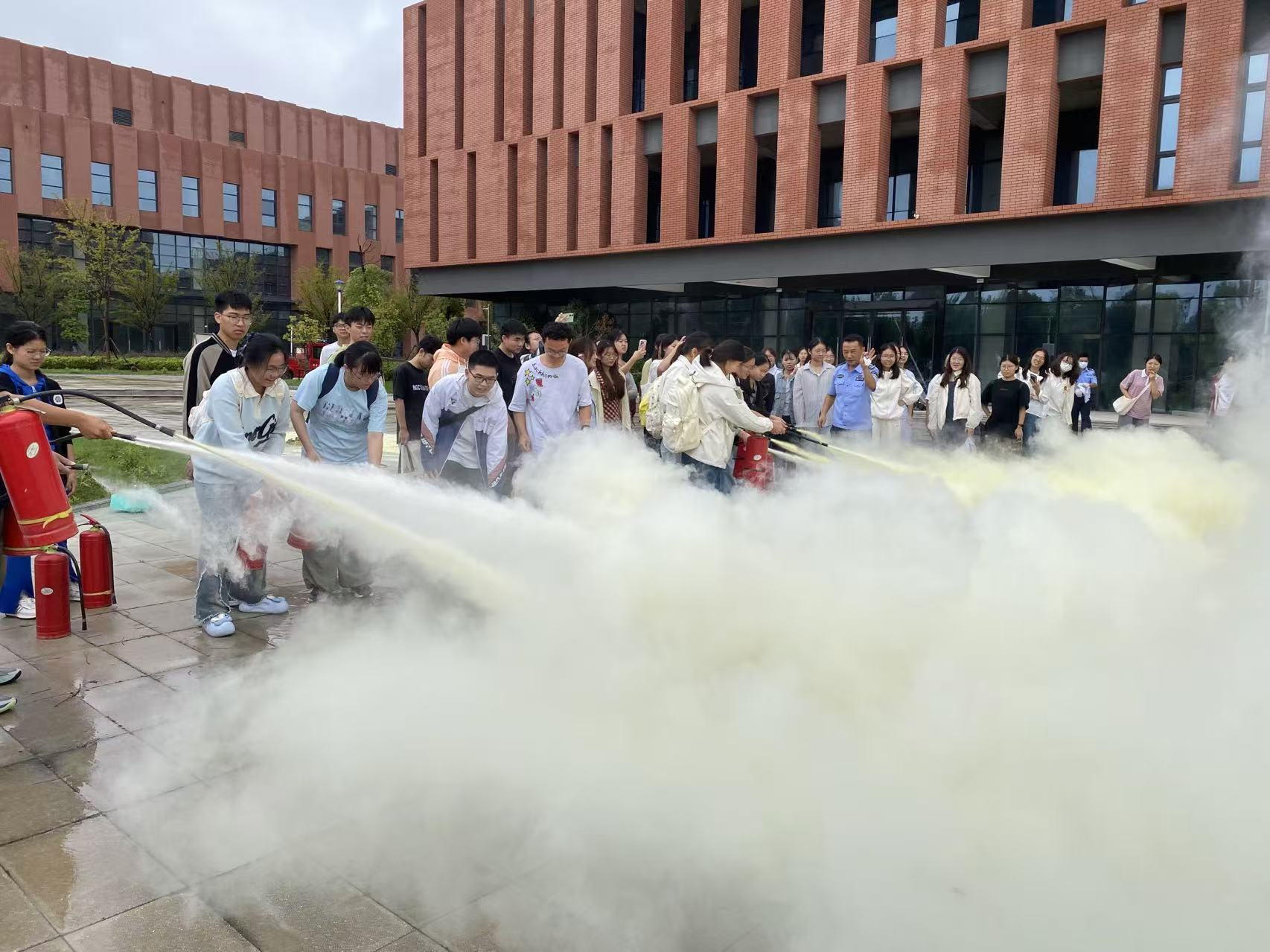 淮南市消防救援支队综合指导科徐新伟等结合高校典型火灾案例,系统讲解火灾的危险、报火警方法、消防器材的使用方法、实验室以及宿舍火灾的预防、指导学生掌握火场疏散逃生要点、消火栓和灭火器的灭火技巧。随后还进行了消火栓实操和灭火实战演练,同学们在专业人员的指导下,亲自操作灭火器进行灭火,切实提高了大家应对火情的实战能力和消防安全意识。