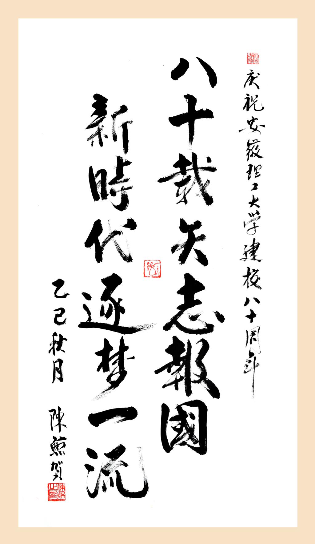 陈鲸院士对学校取得的成绩给予了高度评价。他表示,将始终心系母校发展,愿为母校高质量发展持续助力;期待学校以建校80周年为契机,大力推进高质量发展,积极服务国家重大战略需求,充分发挥学科特色和优势,在保障国家能源安全方面做出新贡献。为了表达对母校八十华诞的诚挚祝福与对未来发展的殷切期许,他现场挥毫题下“八十载矢志报国、新时代逐梦一流”。