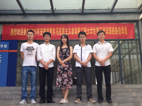 8月24日至28日,由共青团安徽省委员会、安徽省学生联合会主办的2015年安徽省青年马克思主义者培养工程大学生骨干培训班在合肥学院举行。我校研究生会主席周姚姚,学生会主席王艺腾、副主席姜福祥,大学生社团联合会主席朱文孝以及共青团新媒体工作室主任陆蓉等5位同学参加了培训。其中,周姚姚、王艺腾、姜福祥、陆蓉在培训班期间表现突出,荣获“优秀学员”称号。