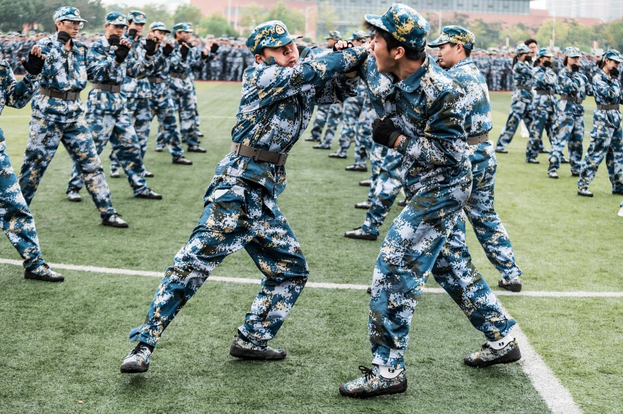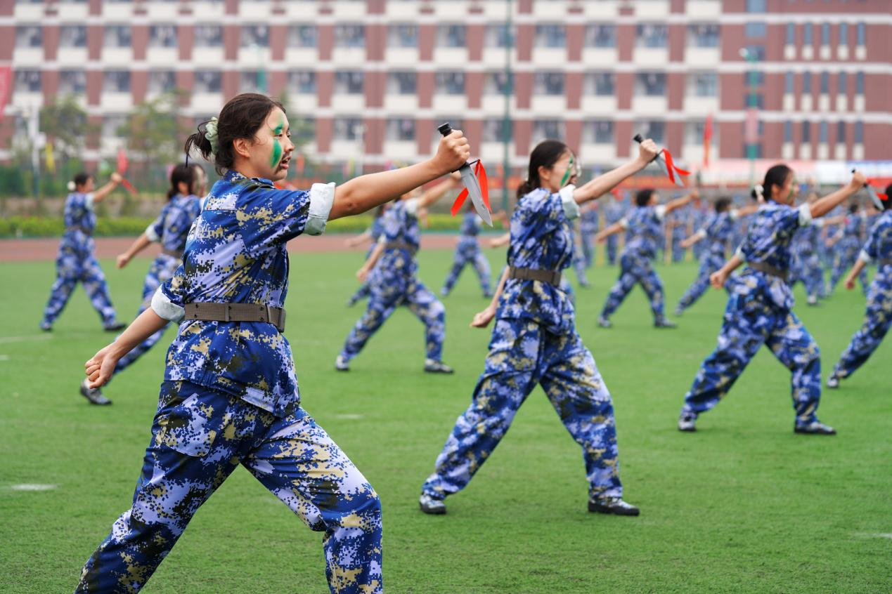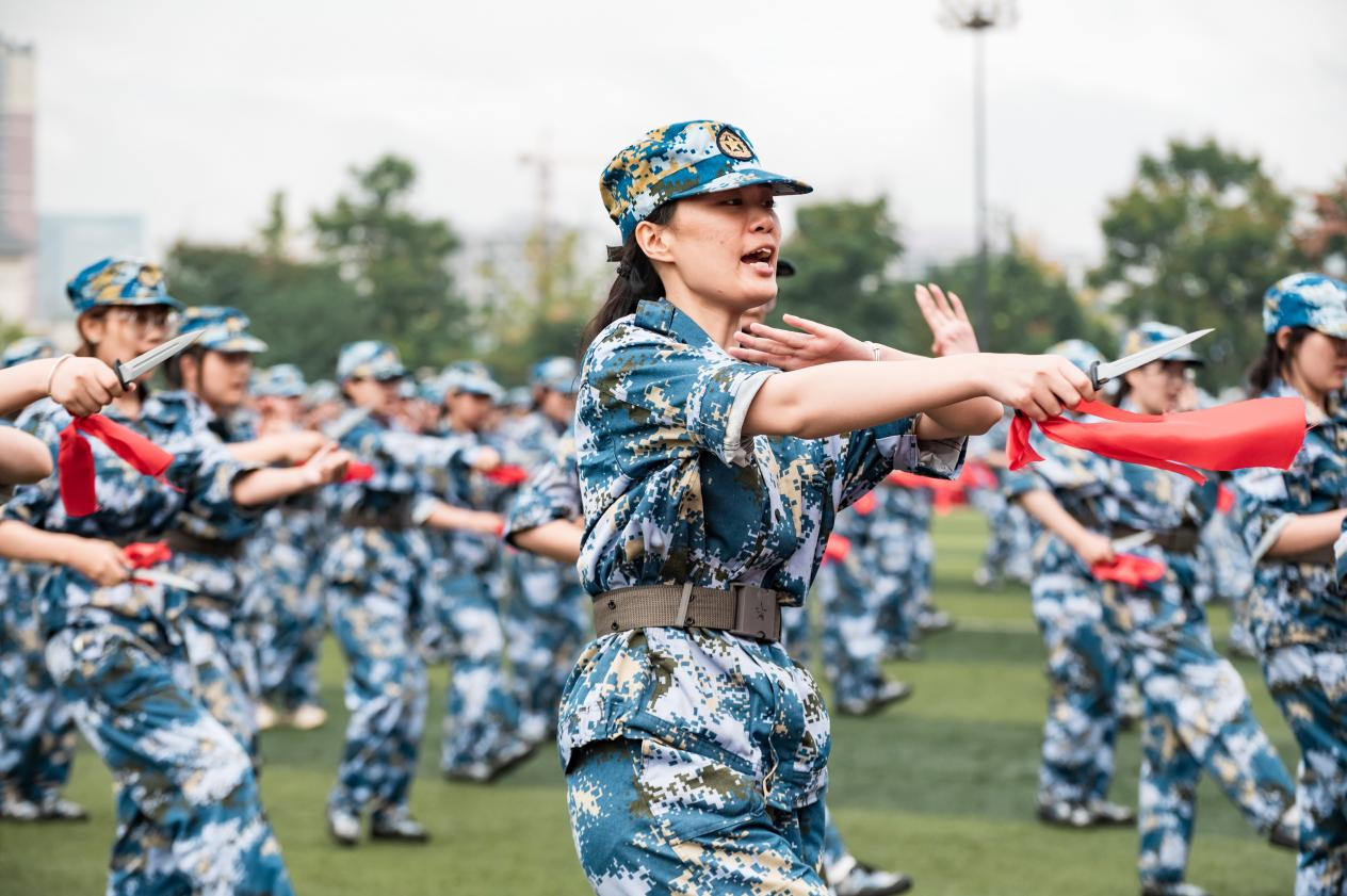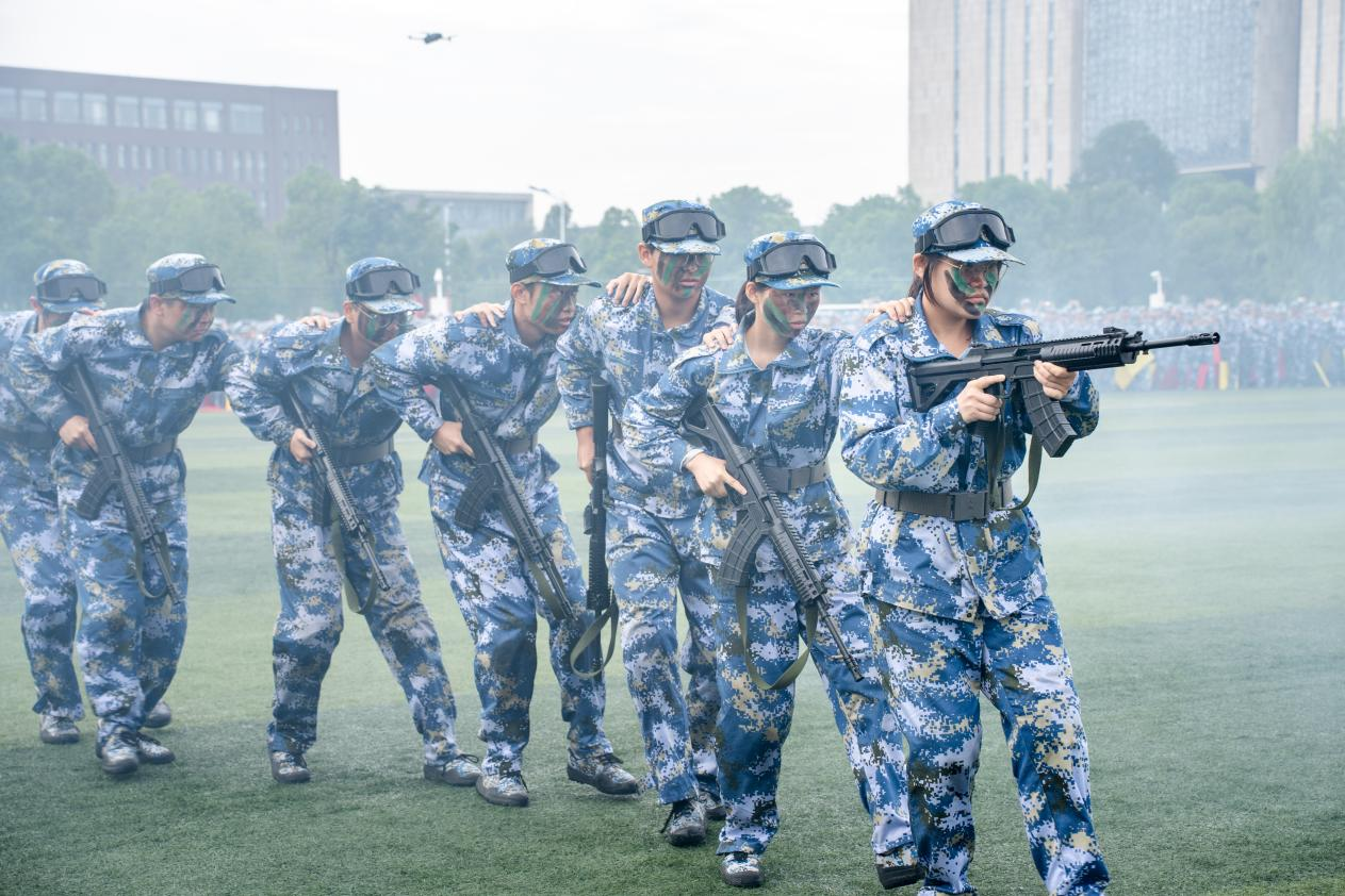 伴随着激昂雄壮的阅兵进行曲,军训团方阵在国旗、校旗方队的引领下,依次通过主席台接受检阅。学员们军容严整,步伐铿锵,口号嘹亮,展现出整齐划一的队列动作与昂扬向上的精神风貌,尽显军事训练与团队协作的丰硕训练成果。随后进行的特色科目汇报表演精彩纷呈,刺杀操方阵刀出如风,匕首术演练行云流水,战术小组实战模拟硝烟弥漫,格斗对抗虎虎生威,韵律操表演则以灵动舞姿诠释刚柔并济的青春力量。五大特色项目将“技能训练”与“艺术表达”完美融合,赢得全场阵阵掌声。