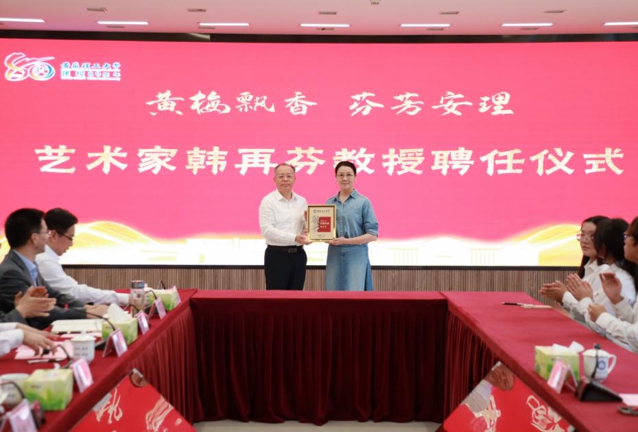 9月30日上午,校党委书记郭永存在舜耕苑会议室会见安徽再芬黄梅文化艺术股份有限公司董事长、一级演员韩再芬教授,聘任韩再芬教授为学校特聘教授,并开展交流座谈会。校党委常委、副校长王先江主持会议。