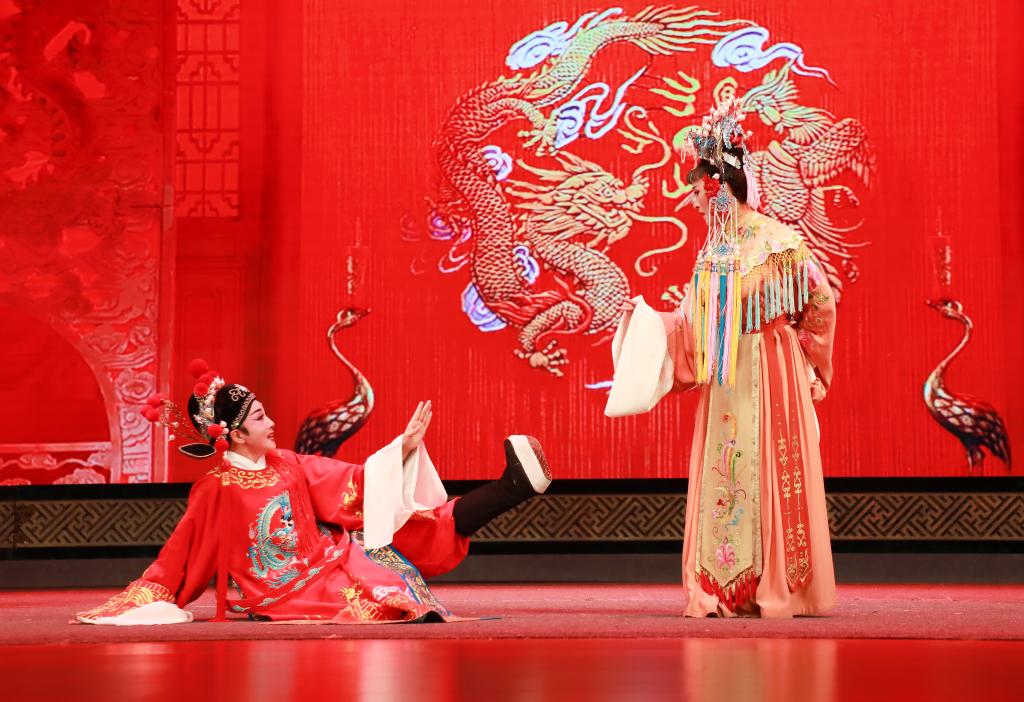 《女驸马》作为黄梅戏最具代表性的经典剧目之一,讲述了民女冯素珍为救夫婿,女扮男装进京赶考,历经曲折最终成就美满姻缘的传奇故事。演出中,韩再芬老师以其精湛的演技、优美的唱腔,生动塑造了冯素珍善良、勇敢、聪慧的古代女性形象。优美的唱腔和精湛的表演引得现场掌声经久不息。