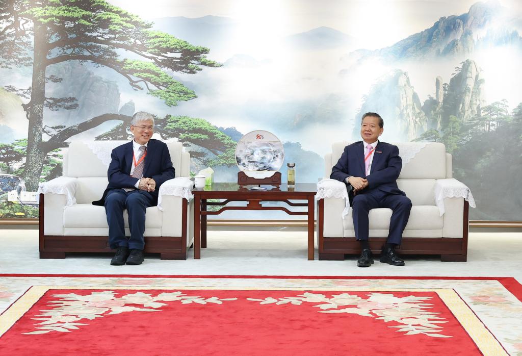 在学校建校80周年高质量发展大会召开之际,10月6日上午,学校在党委办公楼315会客室举行山东大学书画捐赠仪式。校党委副书记、校长袁亮院士与中国工程院院士、山东大学校长李术才亲切会谈,共叙两校情谊,共话合作未来。山东大学党委副书记陈宏伟,校党委副书记、常务副校长余玉刚,校党委常委、副校长鲁超出席捐赠仪式。仪式由余玉刚主持。