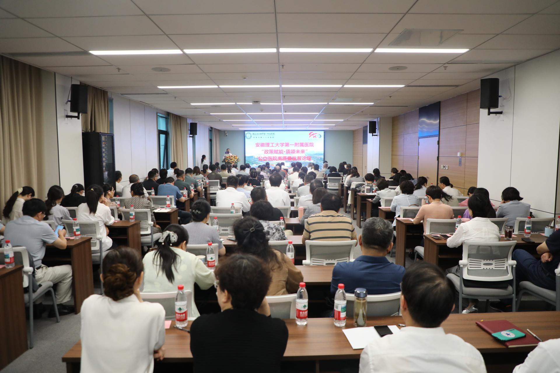 9月13日上午,“政策赋能・质领未来”公立医院高质量发展论坛在一附院南区顺利举行。本次论坛系学校建校80周年、淮南市承接中央财政支持公立医院改革与高质量发展示范项目一周年之际的重要活动,由一附院主办。校党委常委、副校长、医学部主任鲁超,淮南市卫健委主任李萍,学校医学部、医学院以及一附院等单位负责人,市内二级以上公立医院相关负责人出席活动。