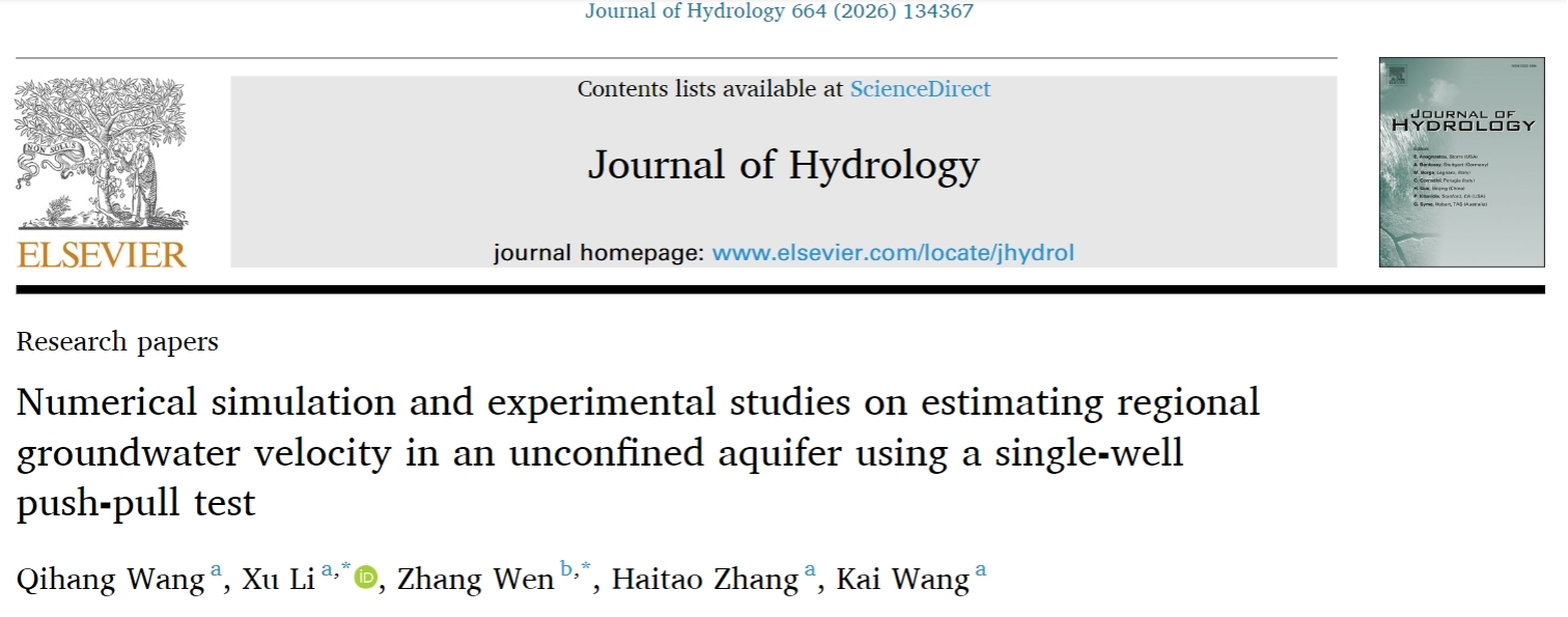 近日,我校地球与环境学院博士生汪启航在水文地质领域顶级期刊《Journal of Hydrology》上发表了题为“Numerical simulation and experimental studies on estimating regional groundwater velocity in an unconfined aquifer using a single⁃well push⁃pull test”的研究论文,地球与环境学院李旭副教授为通讯作者,安徽理工大学为论文第一完成单位。此研究得到国家自然科学基金面上项目、国家自然科学基金青年项目和安徽省自然科学基金青年项目的资助。