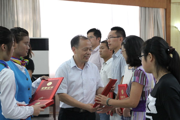 叶醒狮为受表彰的优秀教育工作者颁奖