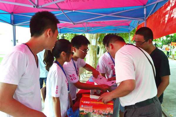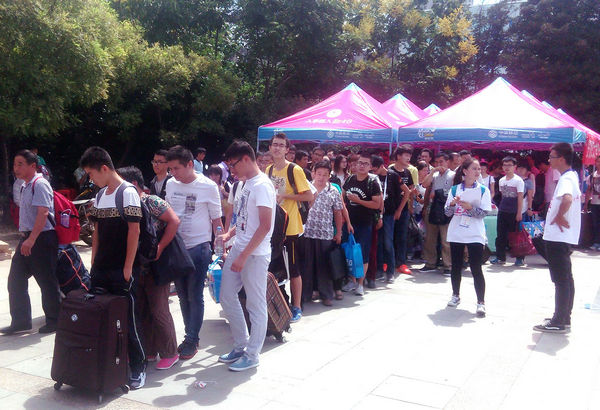 校学生会志愿者在北校区迎新报到站为新生和家长提供咨询服务