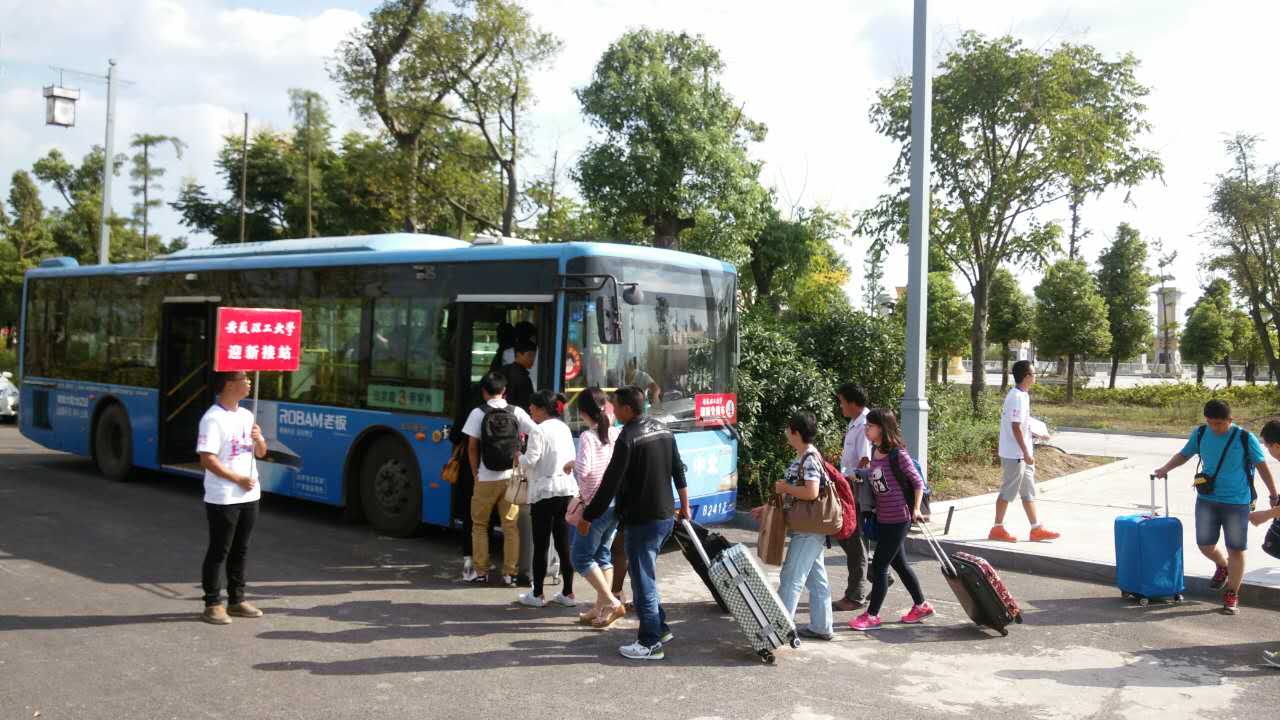 9月10日11:50,一辆满载2015级新生和家长的迎新大巴车从淮南火车站发车驶向北校区,标志着学校2015级新生接站工作顺利启动。