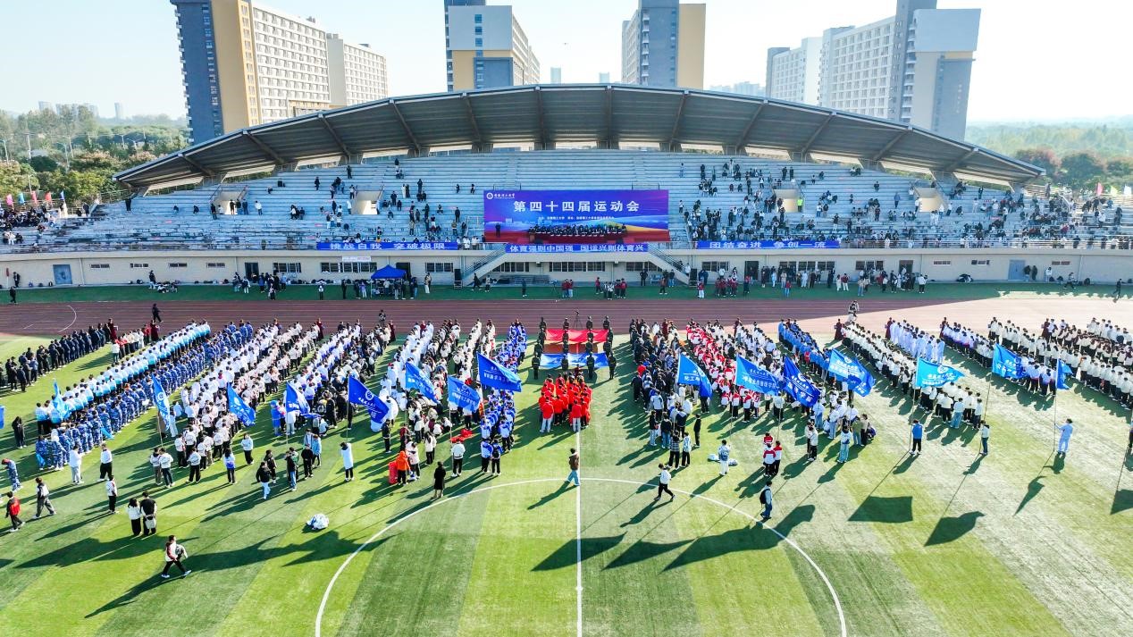 10月22日上午,学校第44届运动会在至诚体育场开幕。校党委书记郭永存出席开幕式并宣布运动会开幕,校党委副书记、常务副校长余玉刚代表学校致辞。校领导鲁超、王献余、王先江、张平松、赵光明、徐良骥等出席。校党委常委、副校长张平松主持开幕式。