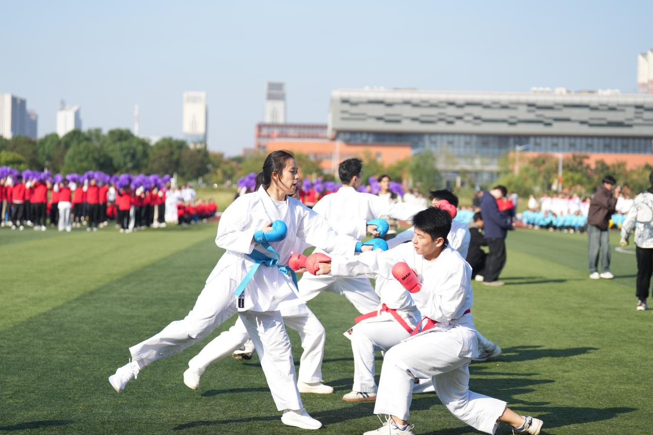 余玉刚在致辞时指出,“体育承载着国家强盛、民族振兴的梦想”,学校建校80年来,始终坚持落实立德树人根本任务,把体育作为“五育并举”的一项重要内容摆在突出位置,积极践行“健康第一”育人理念,着力培养德智体美劳全面发展的社会主义建设者和接班人,运动习惯在校园蔚然成风,学生竞技体育屡创佳绩,整体竞技实力跃居省内高校前列。他希望广大师生牢固树立“每天运动一小时,健康生活一辈子”的理念,接力传承体育精神内核,发扬公平竞争、突破自我的体育精神,强健体魄,磨砺意志,全面发展,以文明精神、健康体魄奠定人生发展之基,为健康中国、体育强国建设作出应有贡献。