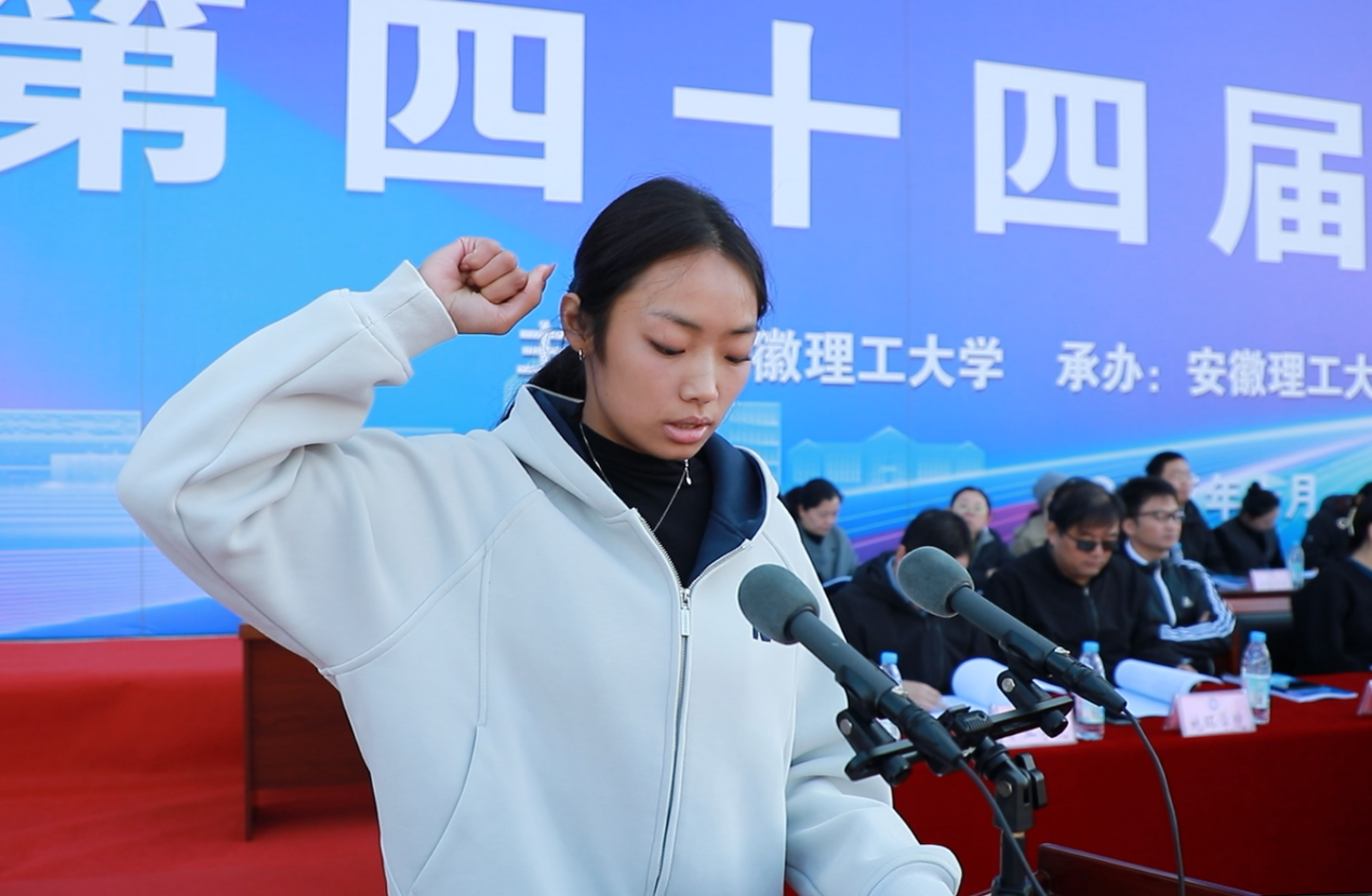 计算机科学与工程学院晋伊婷同学代表全体运动员宣誓,表示将严守规则、尊重对手,以青春风采诠释体育精神。
